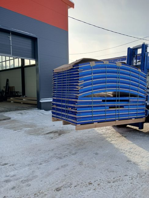 Полноразмерная хоккейная коробка 40 × 20 м размещается в стандартной фуре грузоподъемностью 20 т без дополнительных растяжек и специальных условий перевозки. Это упрощает логистику, сокращает транспортные расходы и делает поставку возможной даже в удалённые и труднодоступные регионы.