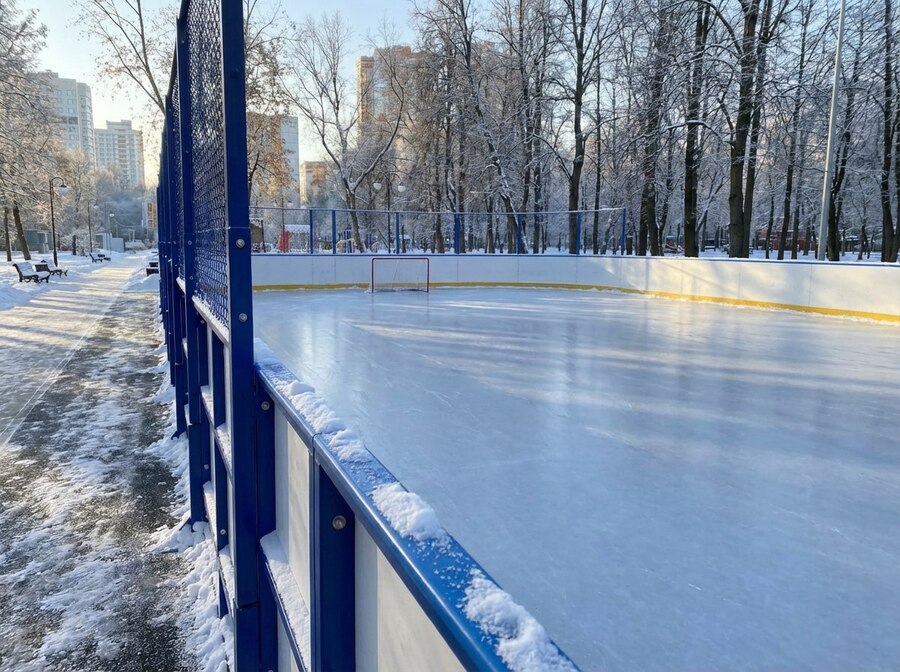 После подготовки конструкции переходят к основанию корта и созданию ледового покрытия. Данный этап определяет качество будущего льда и безопасность игроков. Основание очищают от мусора, песка и камней, проверяют его ровность и при необходимости корректируют уклоны. Для коробок, установленных на грунте, важно создать отвод талой воды, сформировав дренажный слой. Заливка льда выполняется поэтапно нанесением воды тонкими слоями толщиной 1–2 сантиметра с обязательным промерзанием каждого слоя. Это помогает избежать внутренних напряжений в льду, образования трещин и неровностей, а также создает прочное и однородное покрытие, подходящее как для хоккея, так и для массового катания.