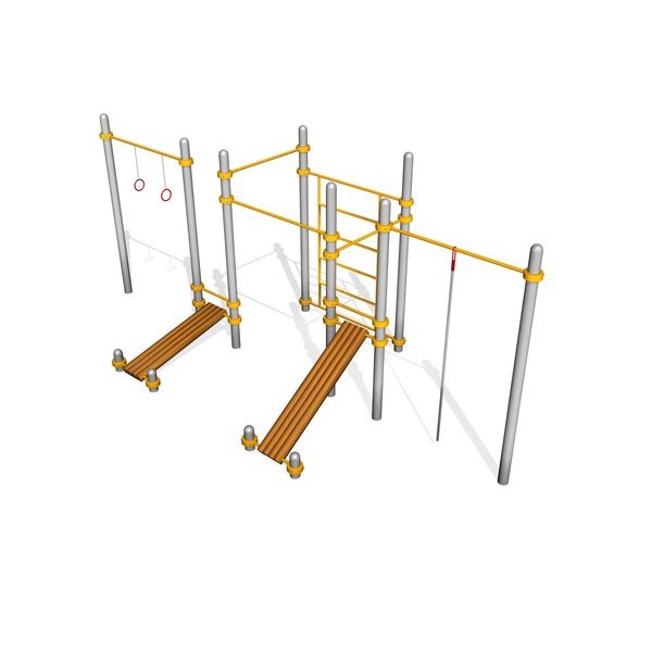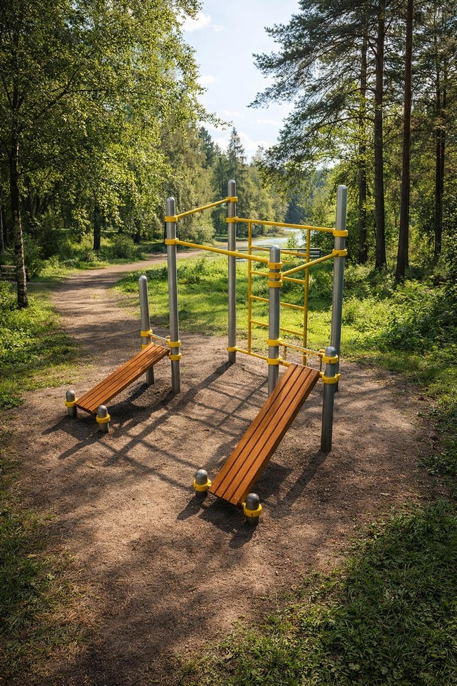 Наклонные и комбинированные конструкции. Включают наклонные скамьи, упоры, перекладины под углом. Помогают варьировать нагрузку, выполнять нестандартные упражнения и адаптировать тренировки под разные уровни подготовки