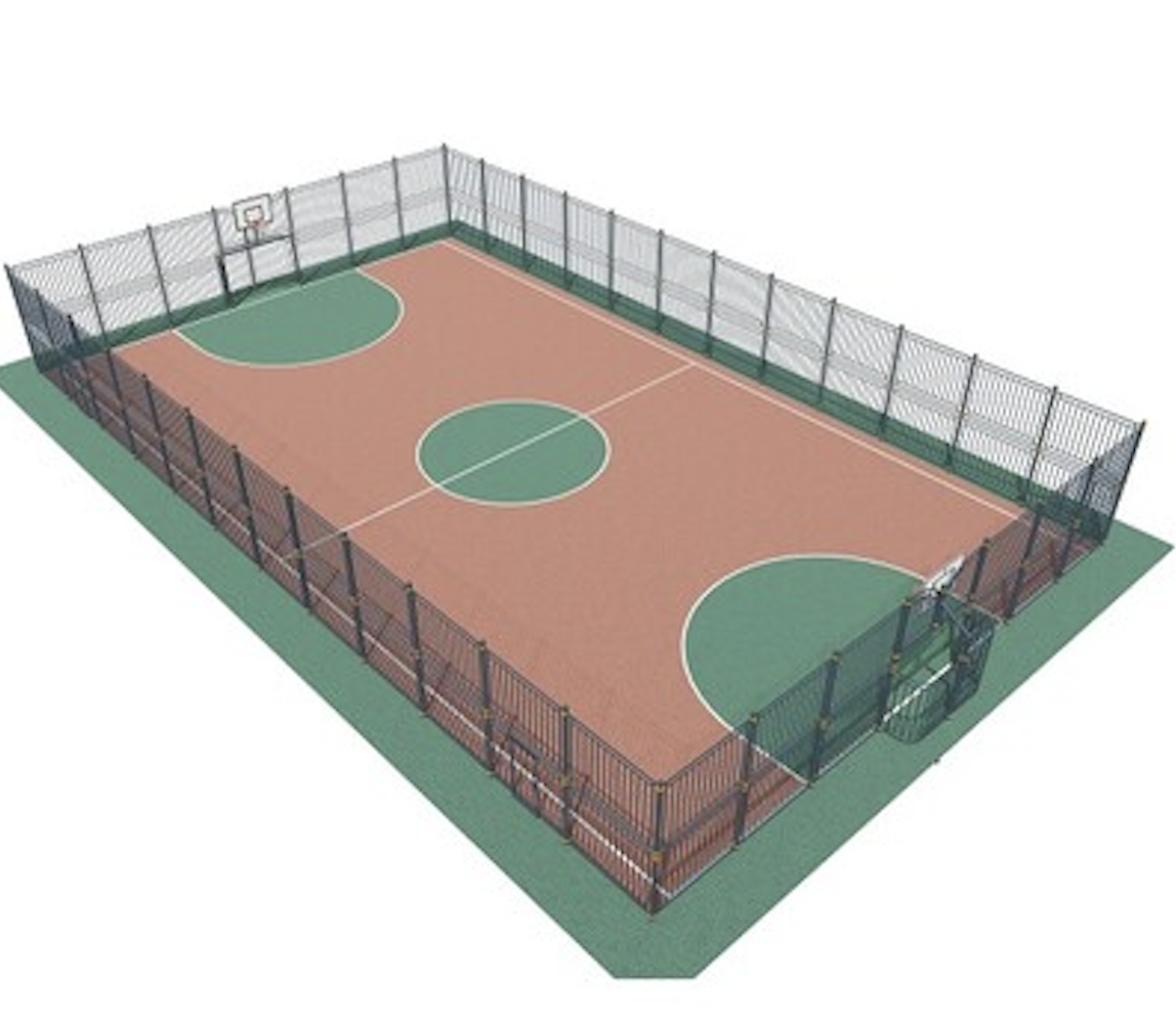 Для плотного и устойчивого основания под ограждение спортивного сооружения используется бетон, асфальт, утрамбованное щебёночное основание.