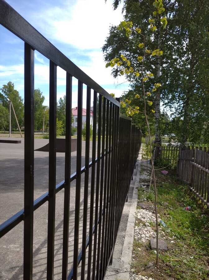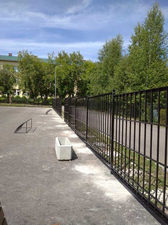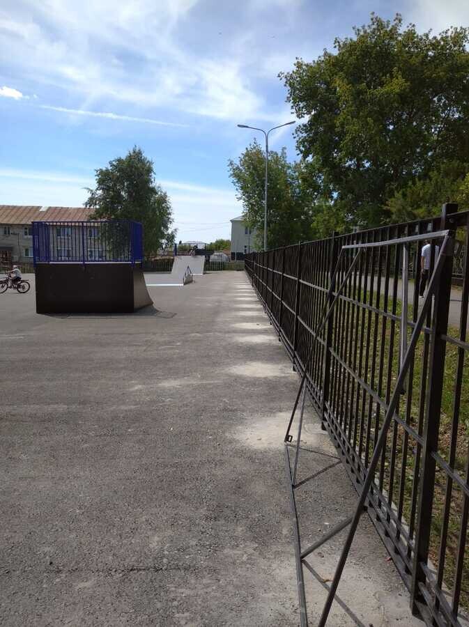 Помимо фигур для катания, для объекта было изготовлено и смонтировано заборное ограждение, состоящее из 53 секций длиной по 2,5 м каждая.